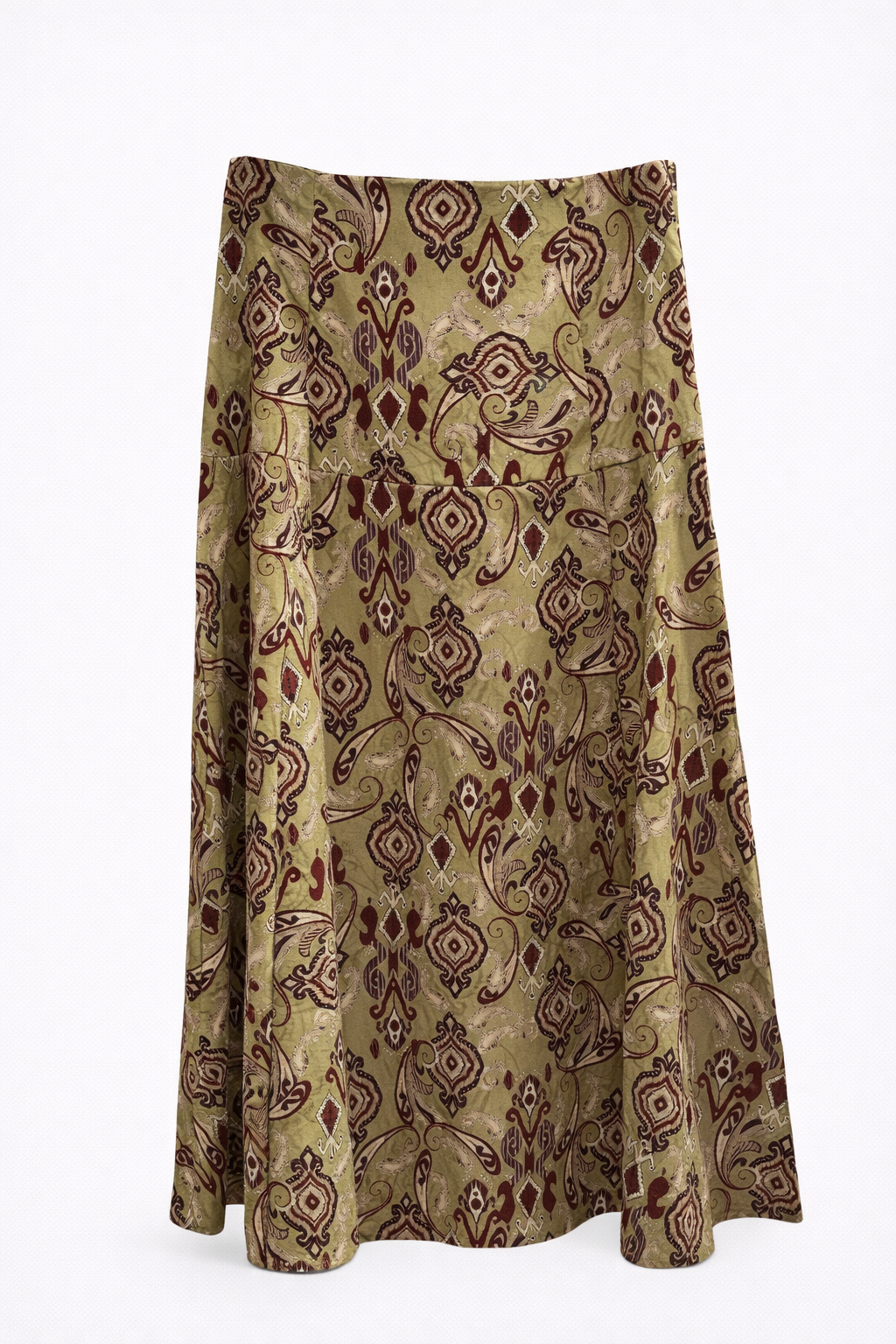 Falda confeccionada 100% en algodón con elastano, lo cual la hace muy cómoda y amoldable a la figura. Con corte a 20 cm de la cintura y cremallera lateral escondida. Con un estampado en verde oliva y burdeos, es ideal para combinar con nuestra Blusa Mónaco del mismo estampado o con cuerpos en colores lisos que contrasten con el estampado, dándole protagonismo a la falda. Disponible en talla M.