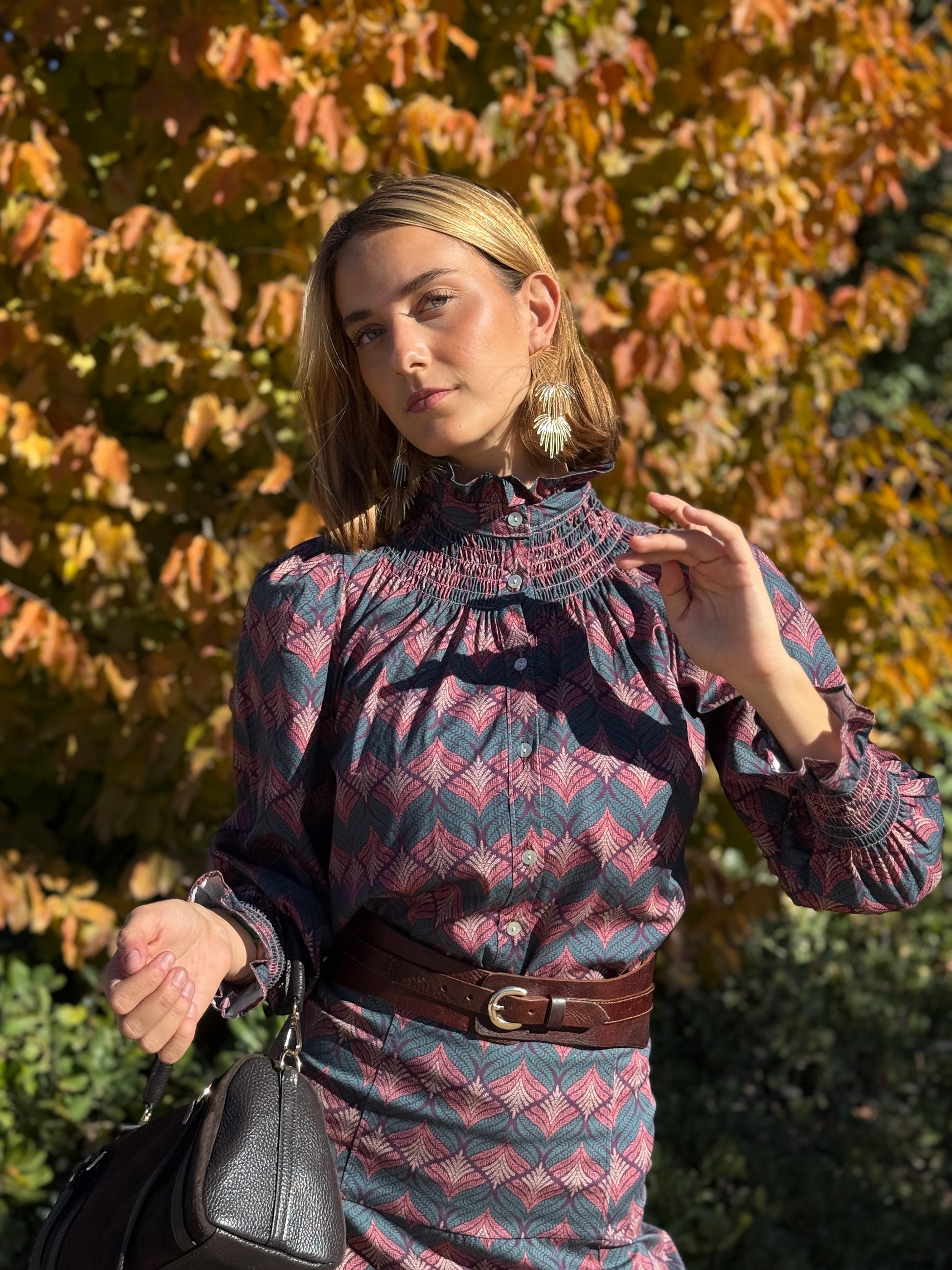 Una de las camisas más icónicas de 9MÁS5, Confeccionada 100% en algodón con elastano, Cuello alto con nido de abeja y mangas abullonadas. Ideal para todos tus looks de diario. Talla única.