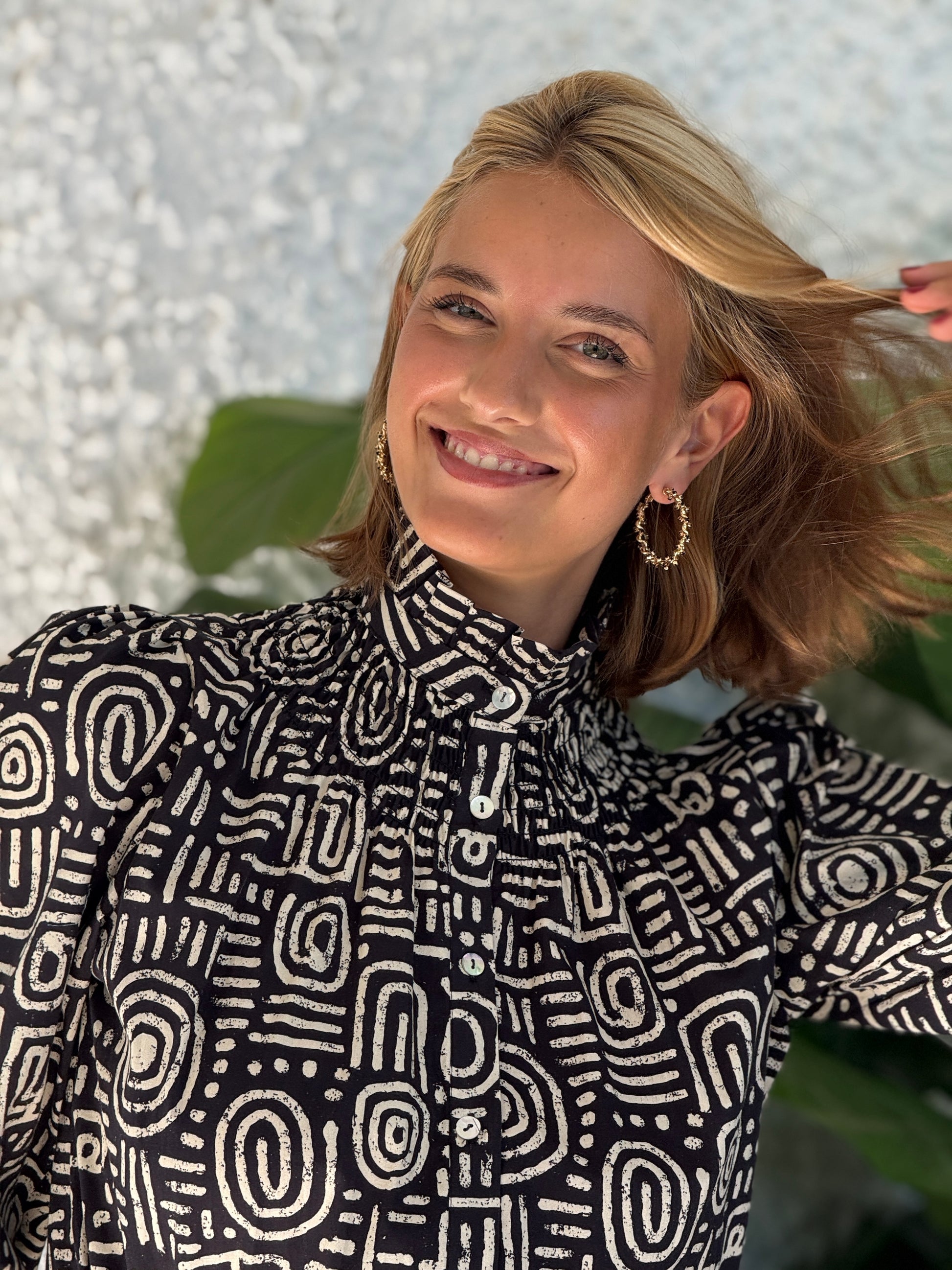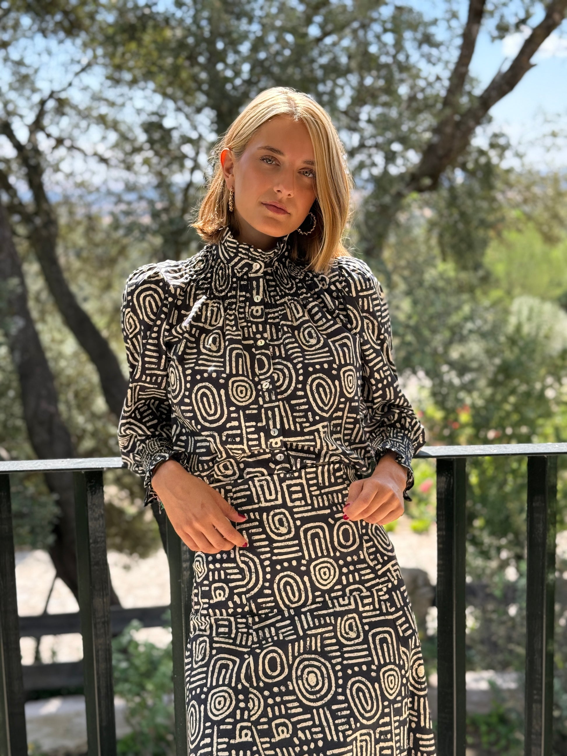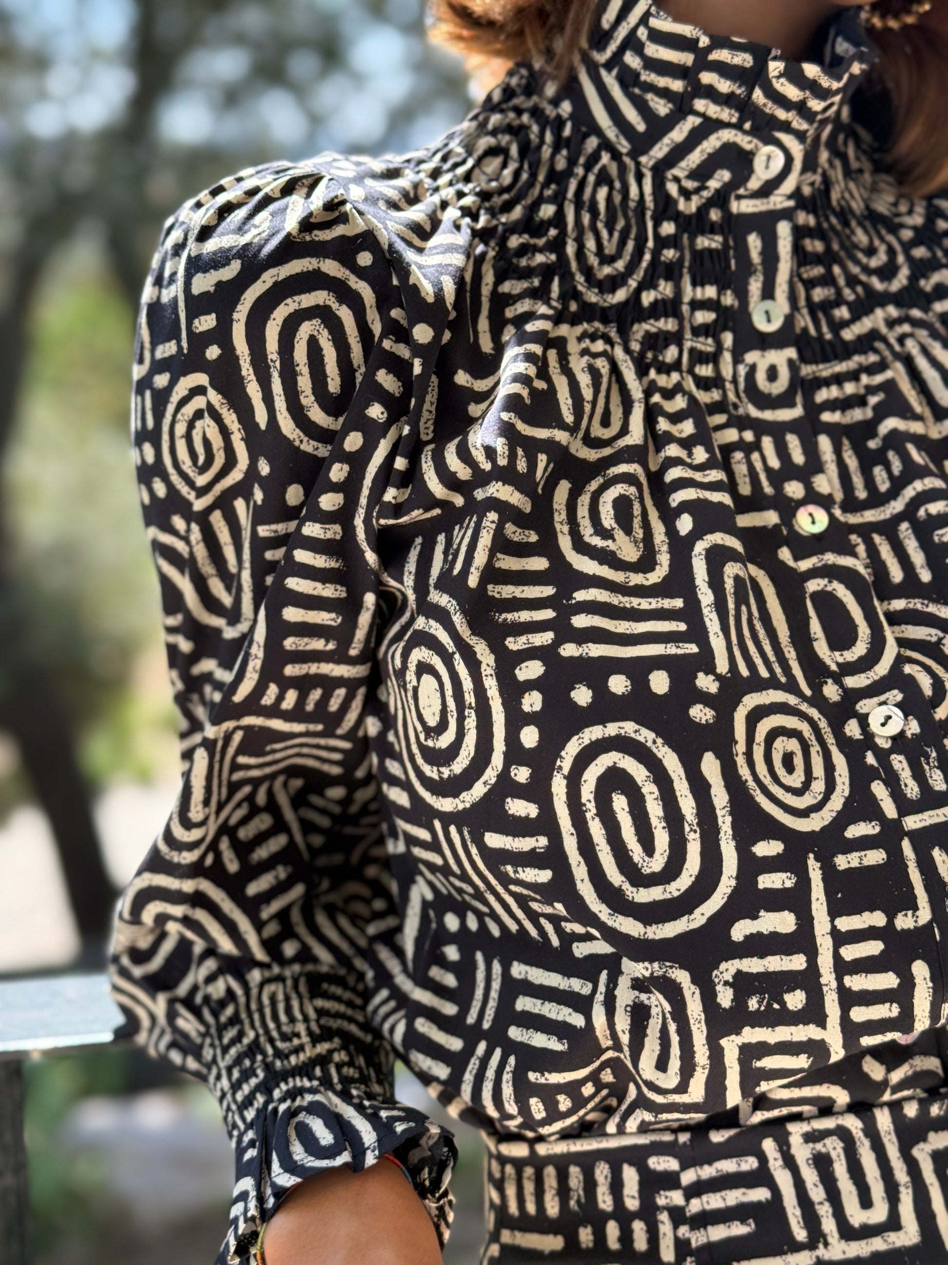 Una de las camisas más icónicas de 9MÁS5, Confeccionada 100% en algodón con elastano, Cuello alto con nido de abeja y mangas abullonadas. Ideal para todos tus looks de diario. Talla única.