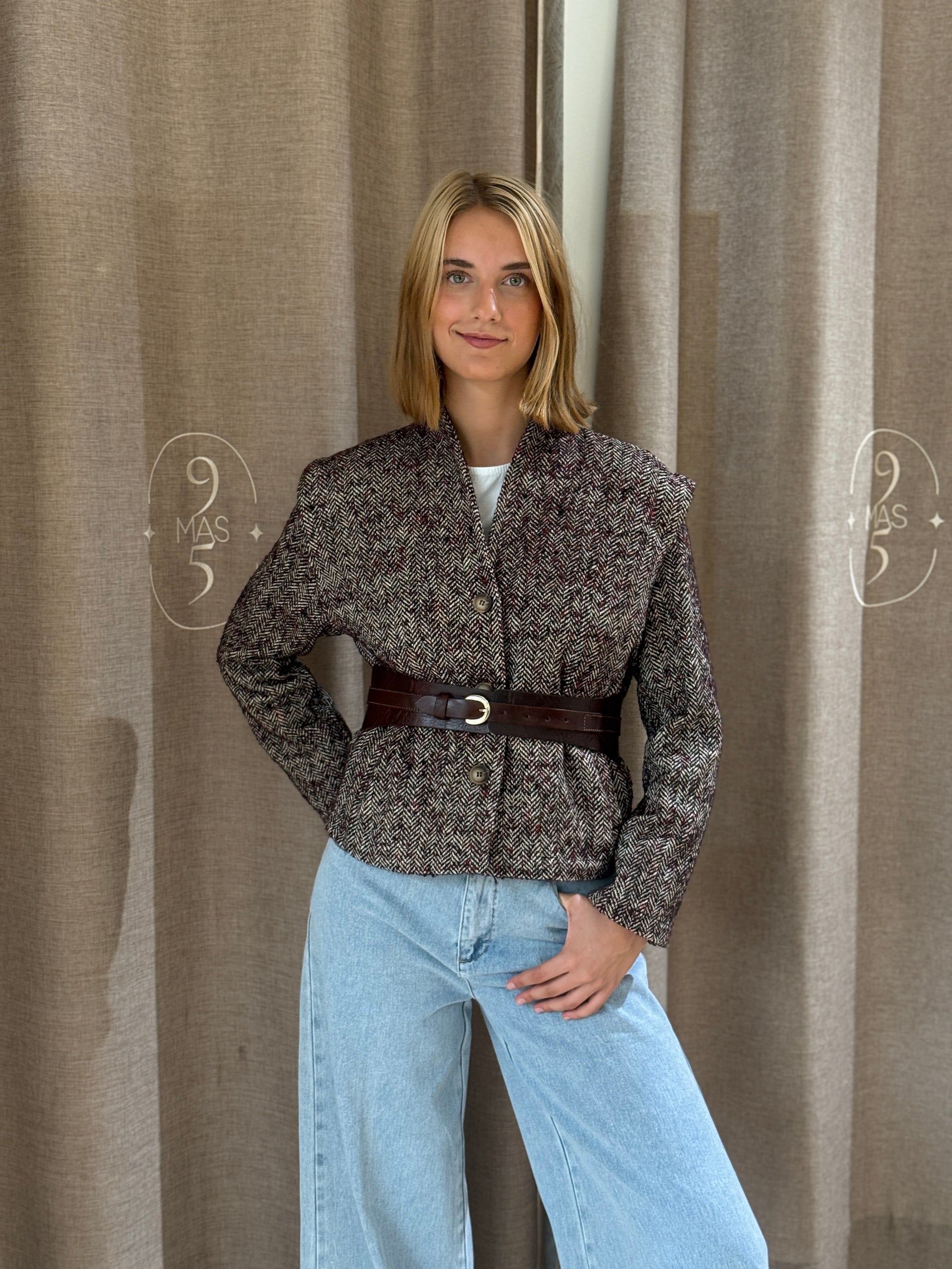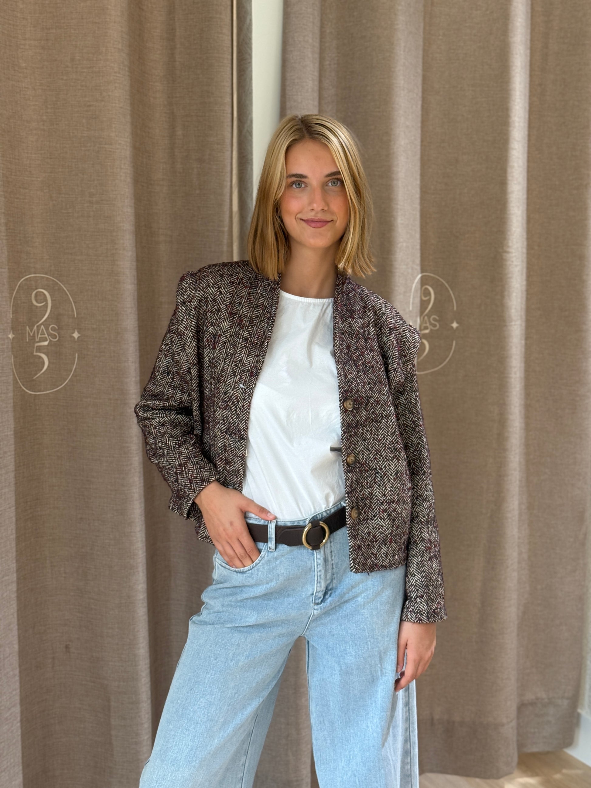 Chaqueta confeccionada en un tweed entrelazado, con manga larga y detalle en las hombreras que estiliza mucho. Ideal para todos tus looks de diario. Una chaqueta muy especial que no te quitarás en toda la temporada. Disponible en tres colores y varias tallas.