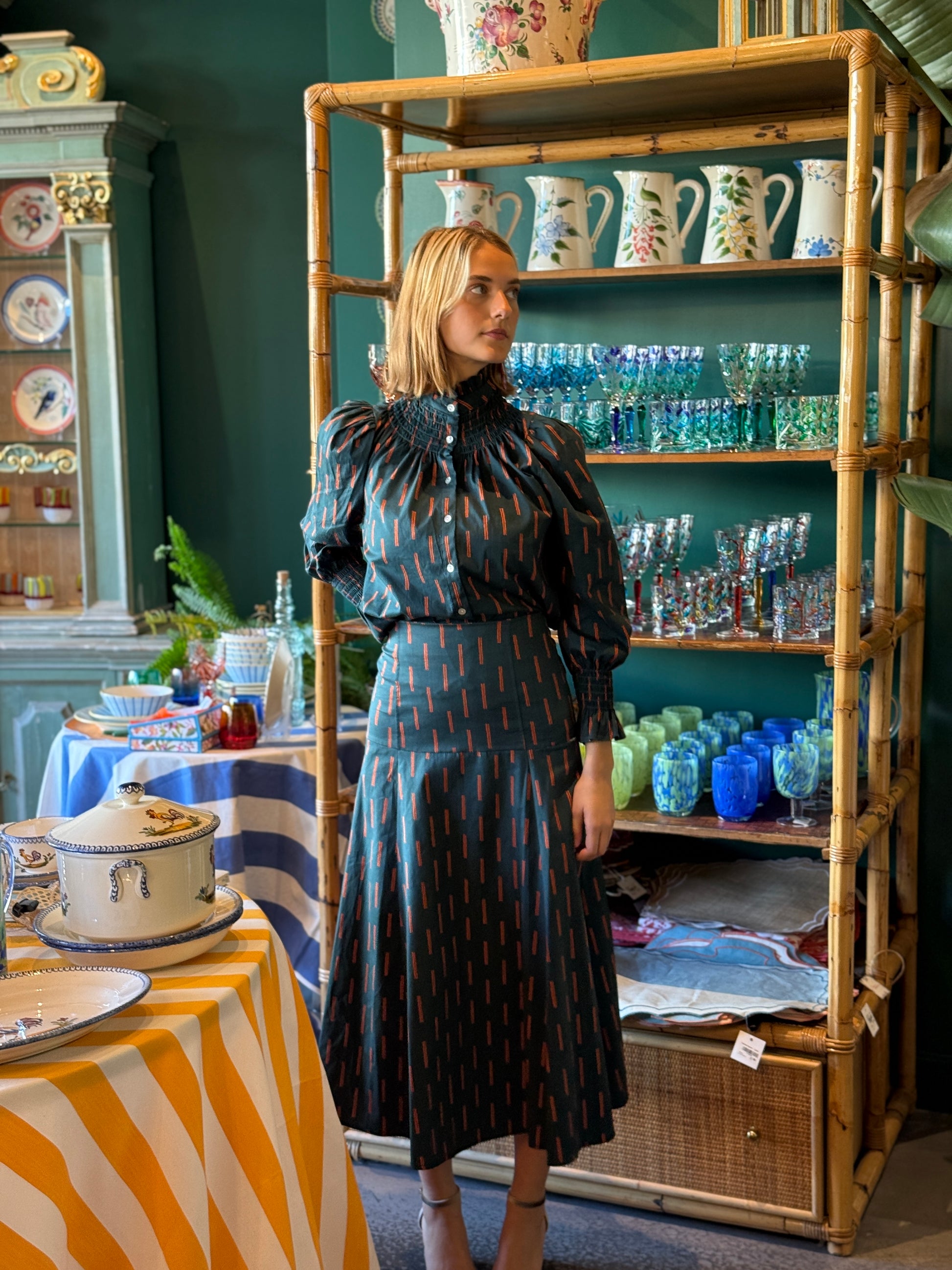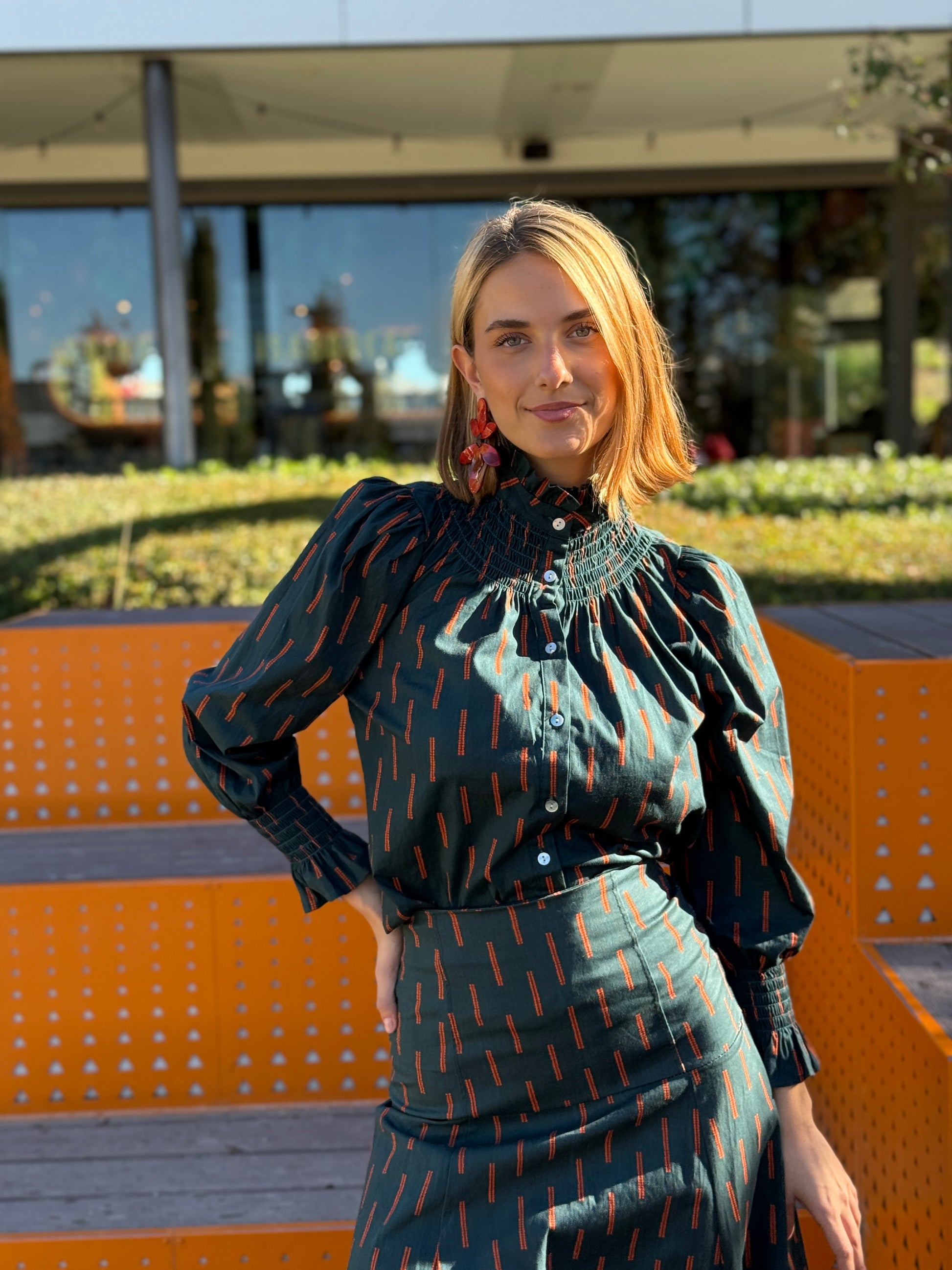 Falda confeccionada 100% en algodón con elastano, que se adapta muy bien a la figura. Con cremallera invisible trasera, se ajusta a la cintura y cadera y luego abre por lo que estiliza mucho. Su estampado único es ideal para esta temporada y combina con la Camisa Agra del mismo estampado. Disponible en varias tallas.