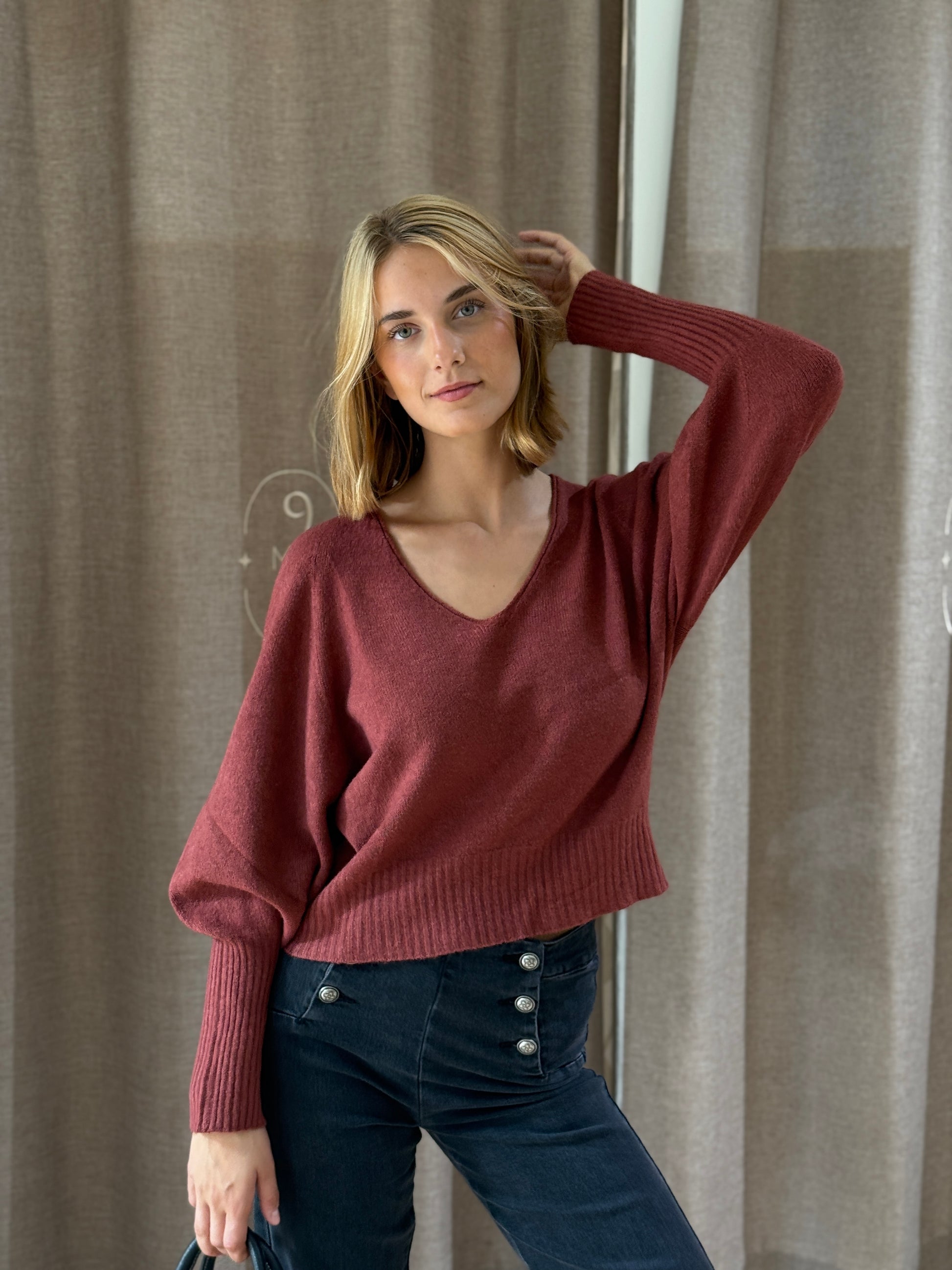 Jersey cuello pico con manga abullonada muy favorecedora. Ideal para todos tus outfits de diario y para combinar con pantalones de tiro alto y medio y faldas. Muy agradable al tacto. Talla única.