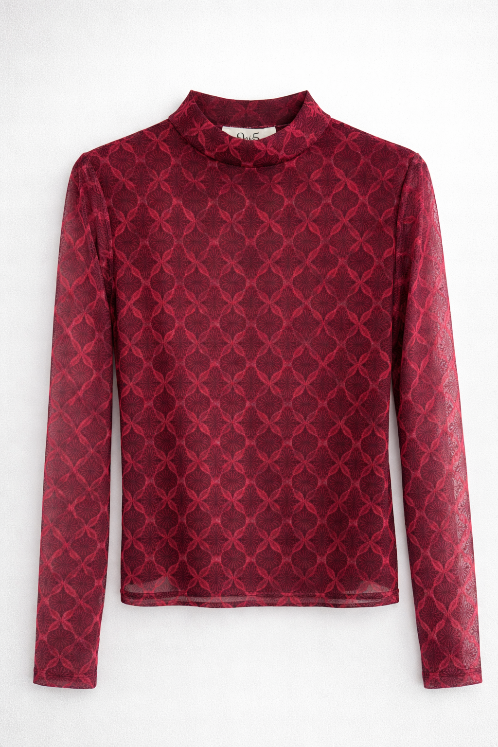 Top confeccionado en tul, con la manga transparente y cuello perkins. Perfecto para combinar con la falda azul del mismo estampado. Perfecto para tus eventos más especiales. Muy de tendencia y favorecedor. Disponible en varias tallas.