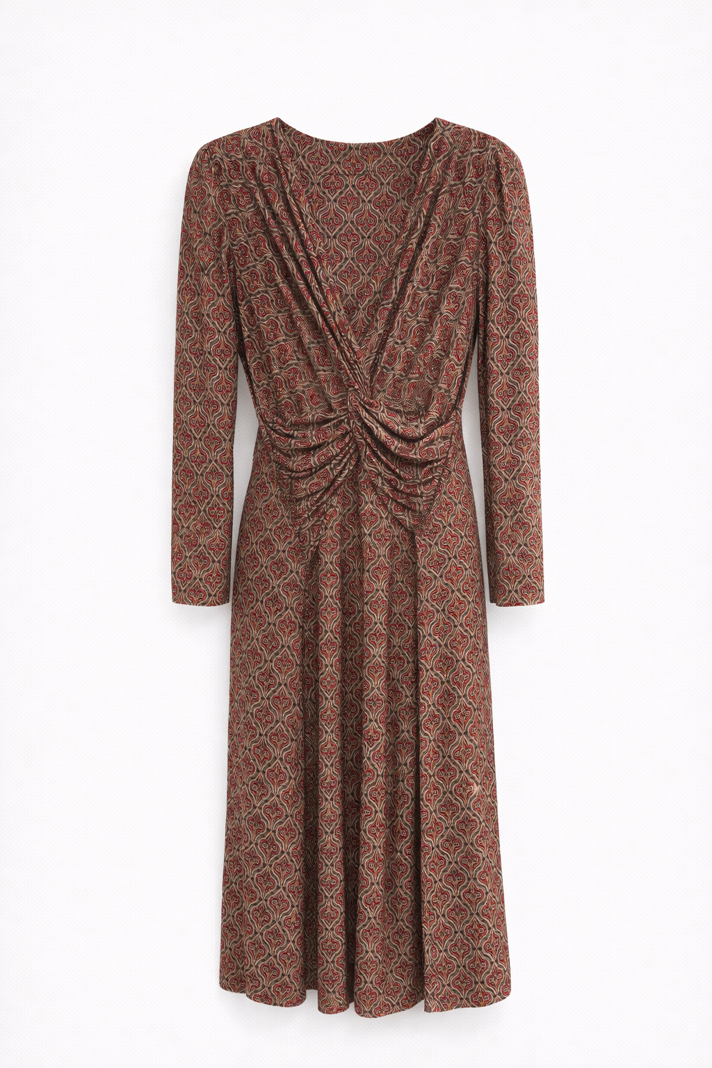Vestido Nudo Estampado Teja y Verde