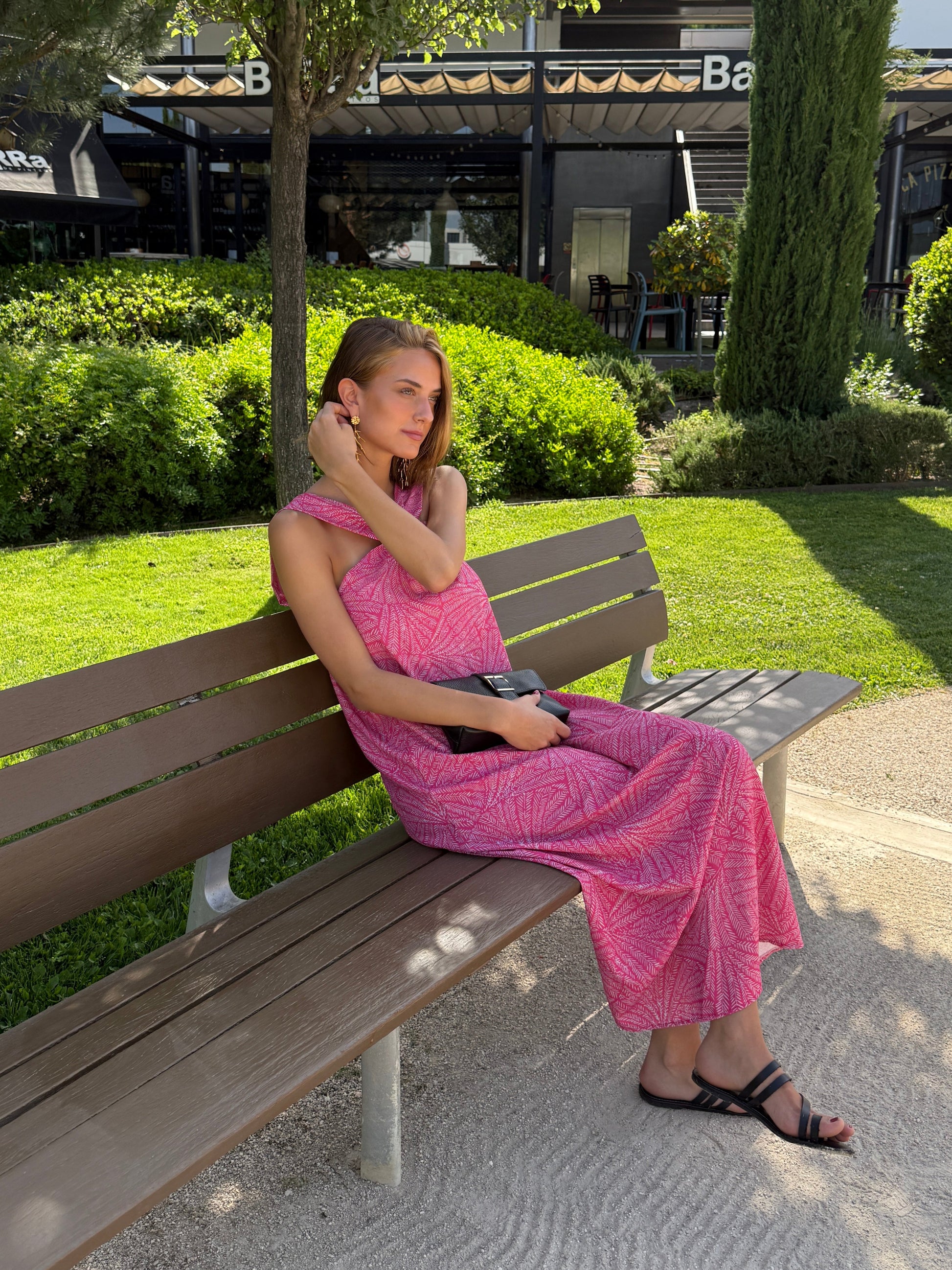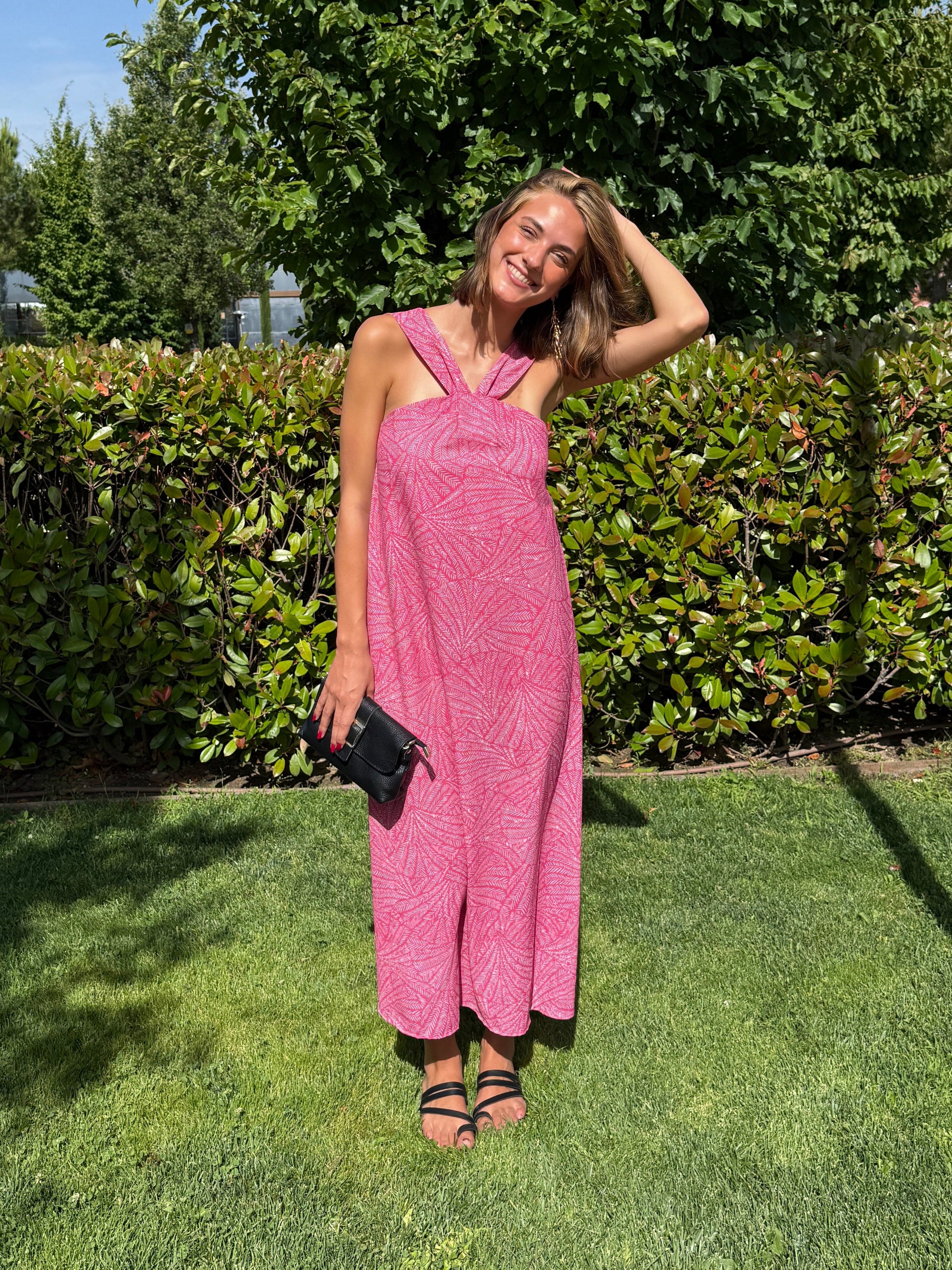 Vestido suelto con escote en uve y recto en la espalda. Con un estampado único y de edición limitada. Súper versátil ya que puedes utilizarlo con los complementos adecuados para cualquiera de tus eventos o para tus looks más fresquitos de diario. Disponible en varias tallas.